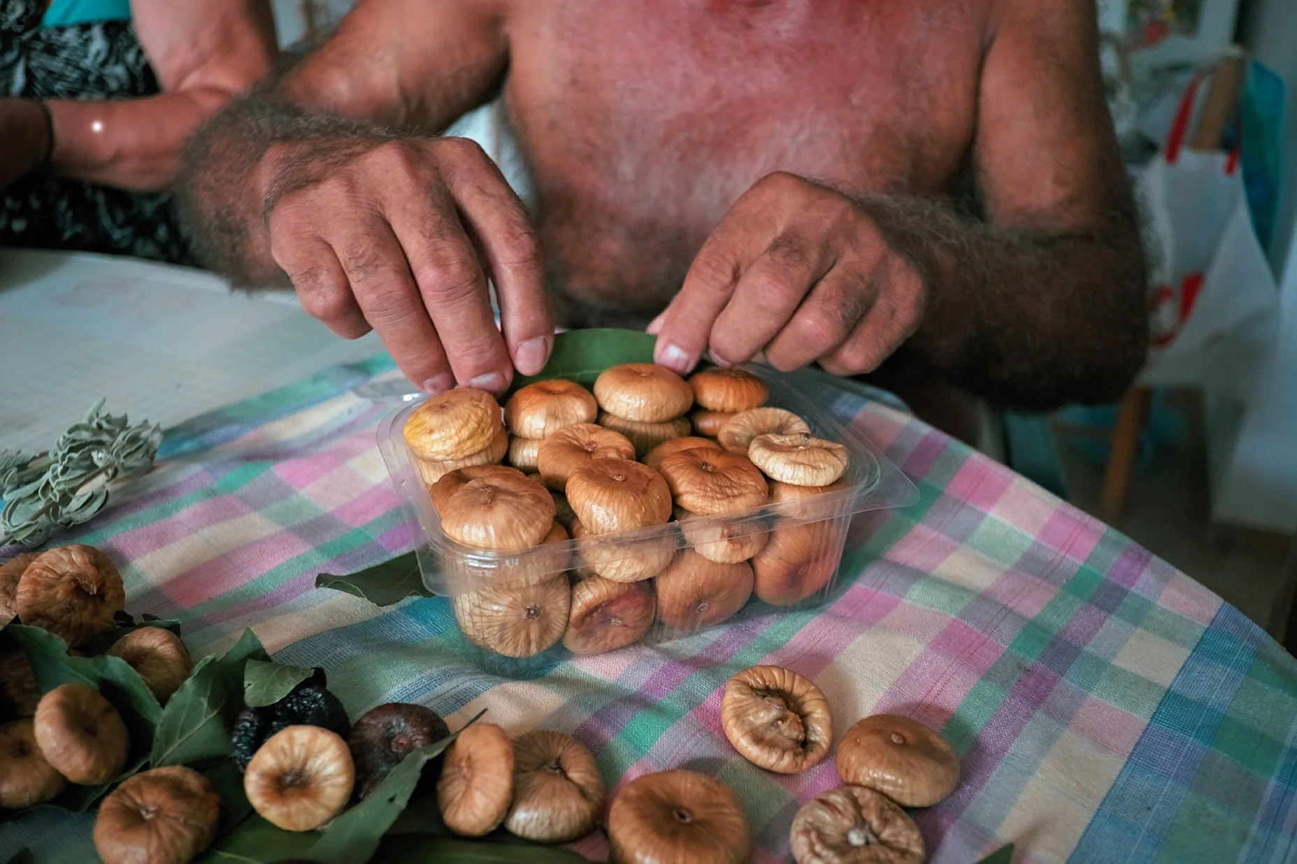 A few days later, the figs had dried in the hot Greek sun. A simple mixture of herbs and salt was made to clean and preserve them, the salt collected by Kristos from a small pool he had constructed by the sea.
